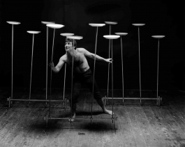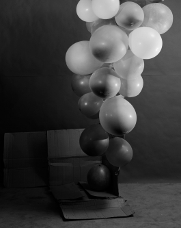The first photograph included a television borrowed from the caretaker and my own mattress. I invited two friends who didn’t know one another to take part. I lit the scene with care. My aim was to create a momentary place on a real life scale. The temporary combinations seemed to liberate each from its origins.